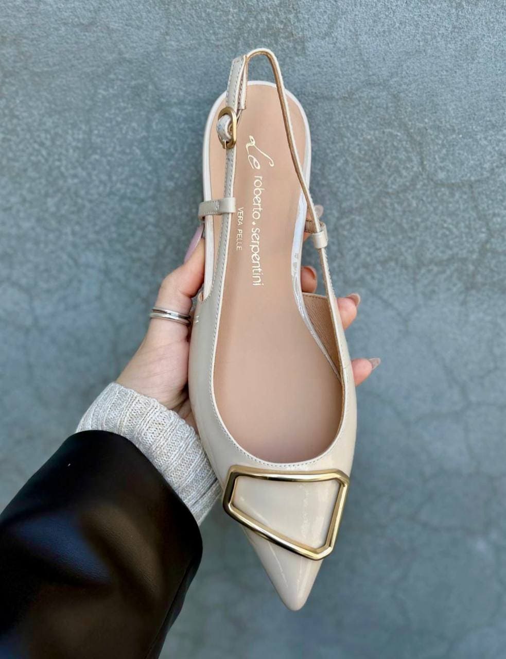 נעלי בובה מעור איטלקי בטקסטורת לקה