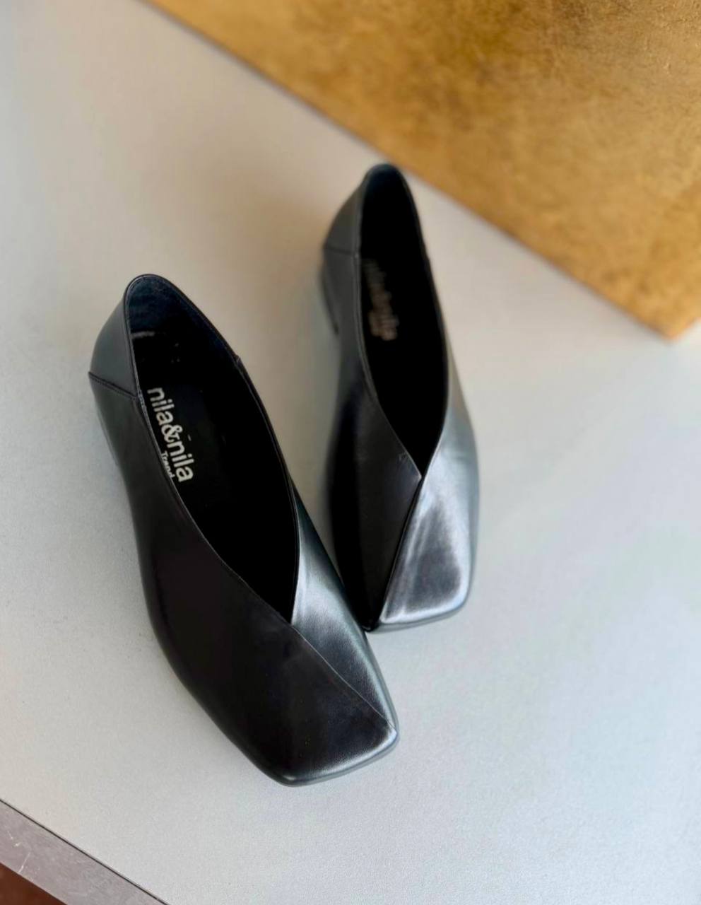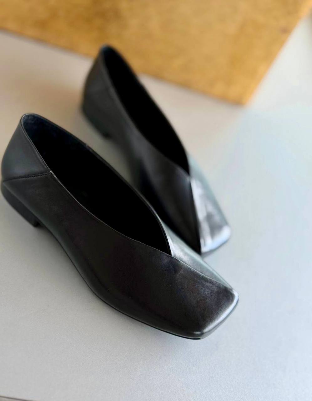 נעלי בובה מעור איטלקי בטקסטורה חלקה