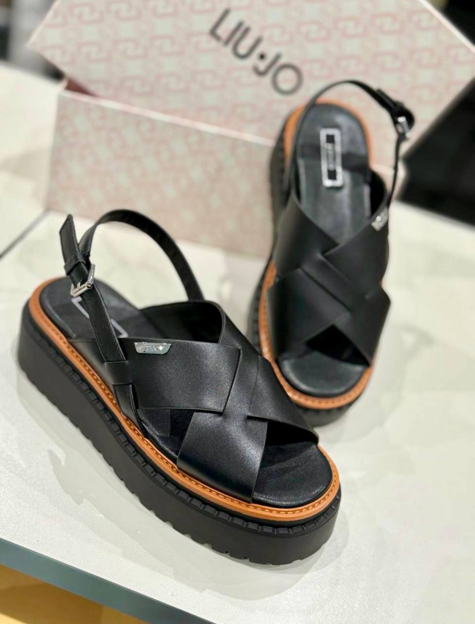 סנדלים מעור איטלקי בטקסטורה חלקה