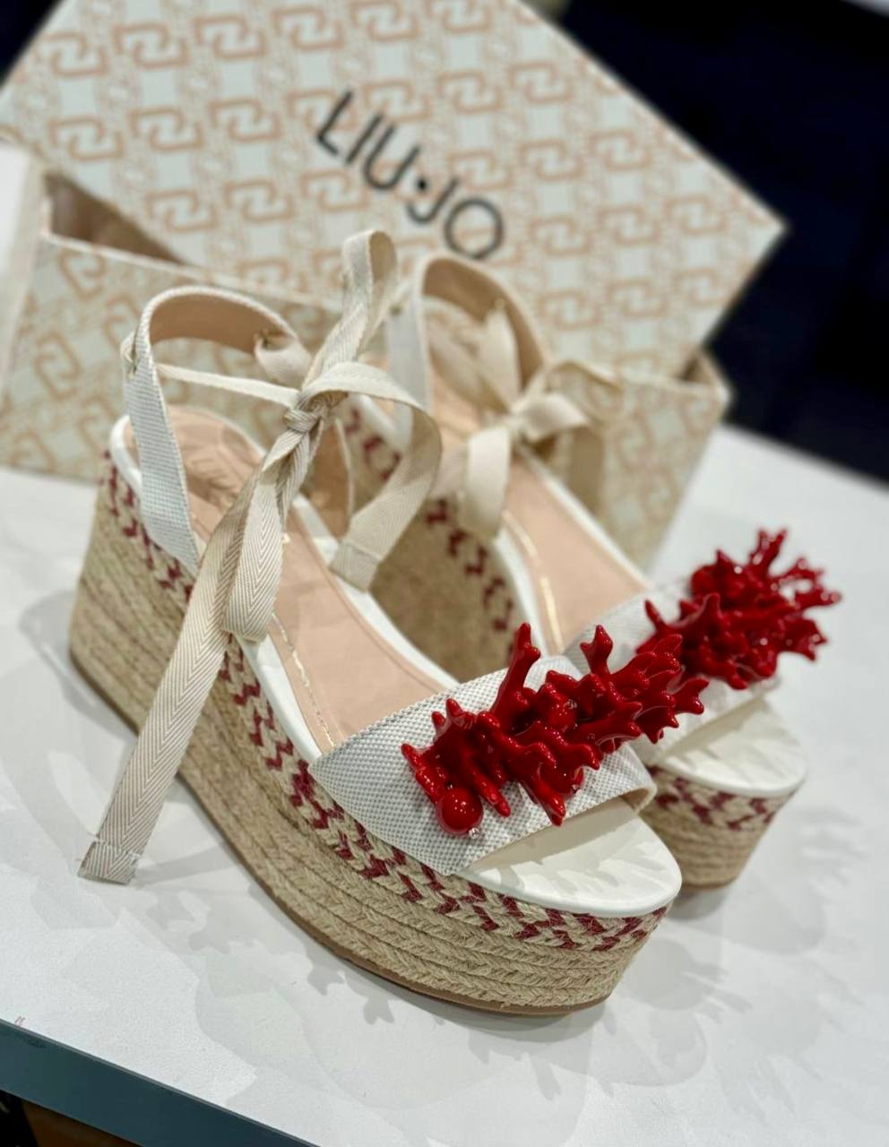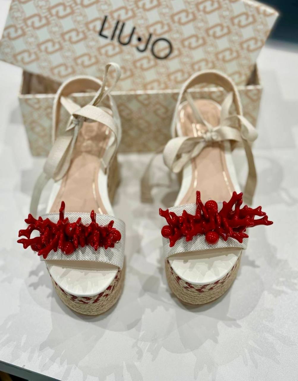 סנדלי פלטפורמה מעור איטלקי בטקסטורה חלקה משולב עם ראפיה