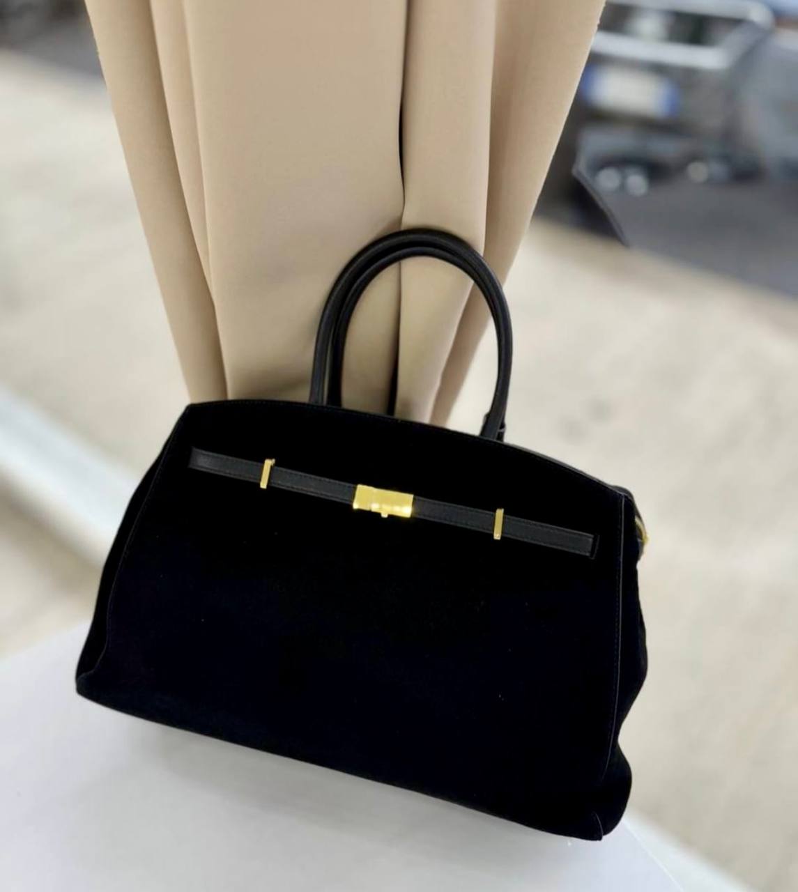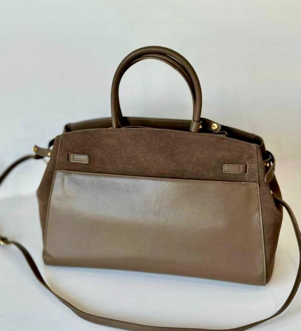 תיק עור אמיתי בטקסטורת ז׳מש מגיע עם רצועת עור ארוכה אביזרים בגוון זהב