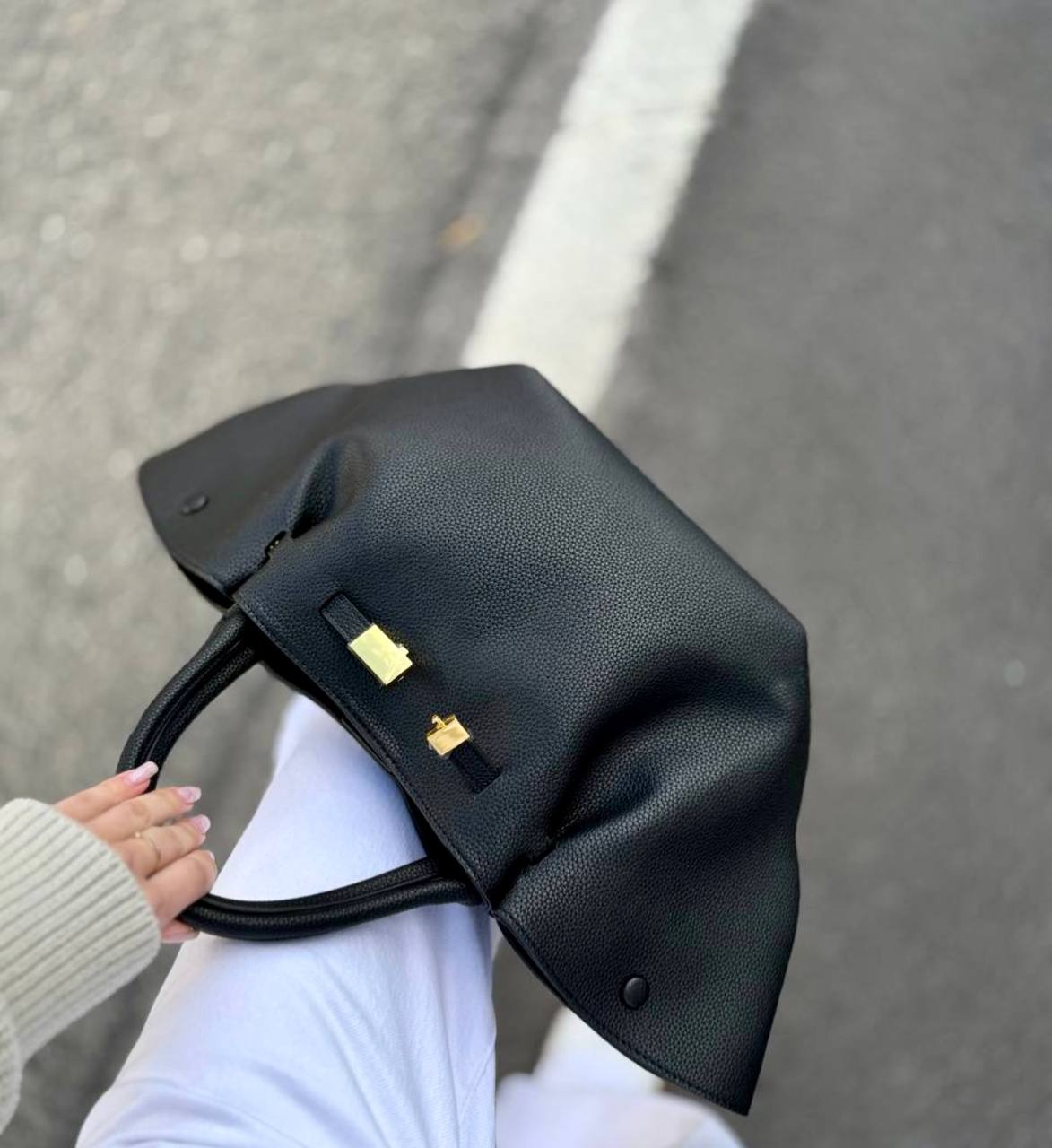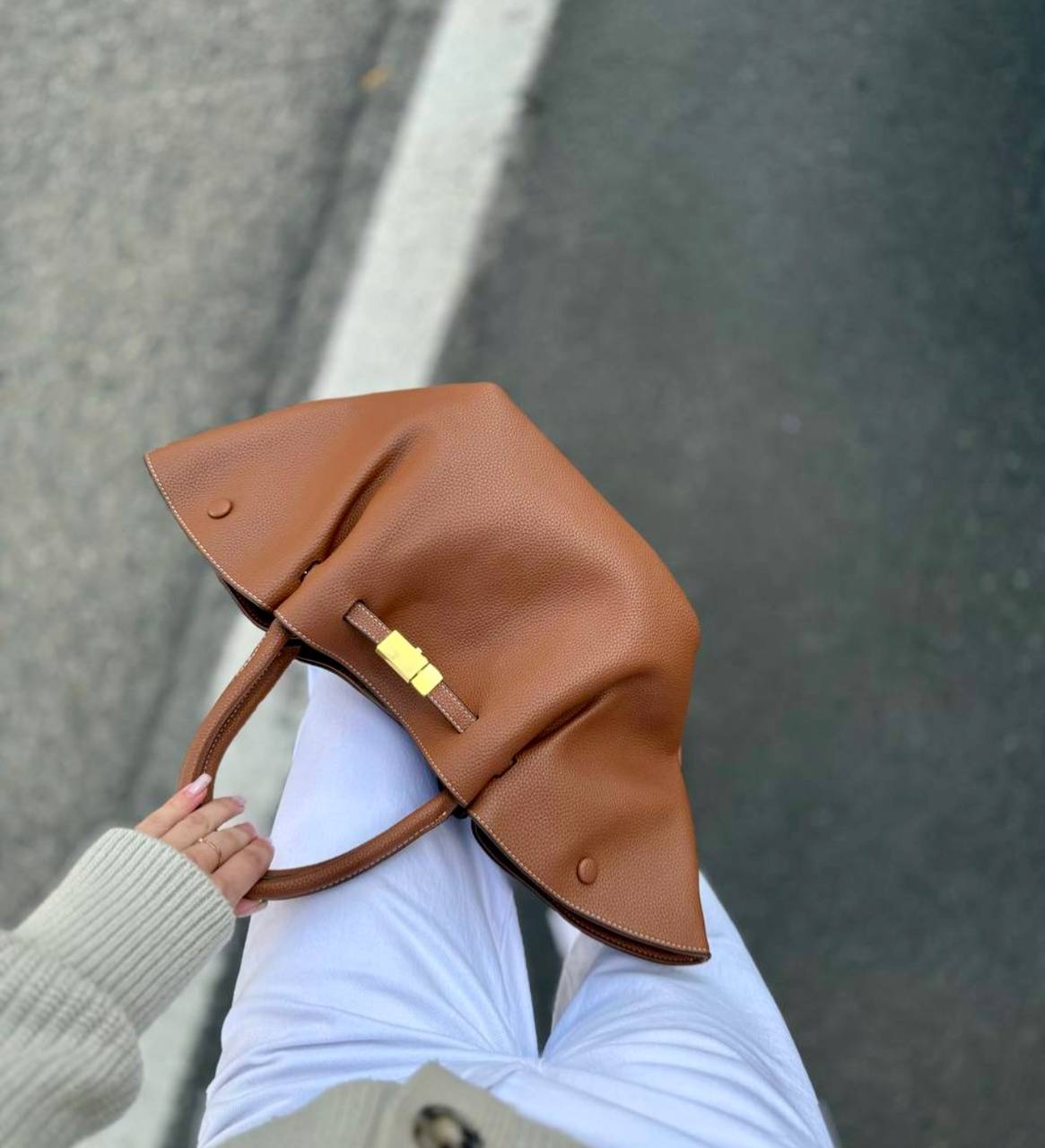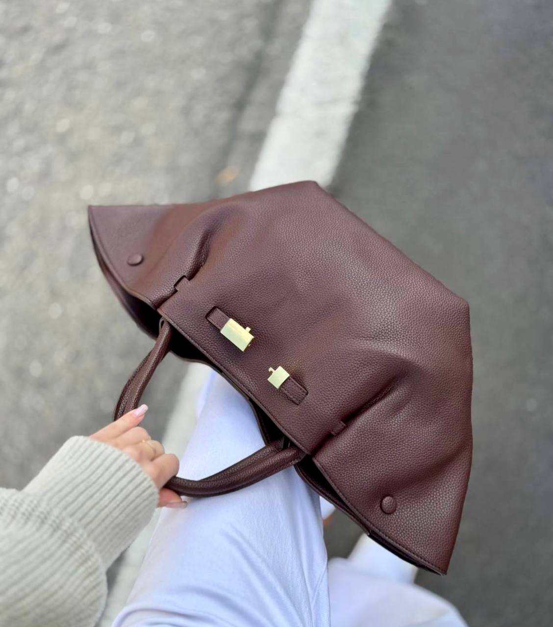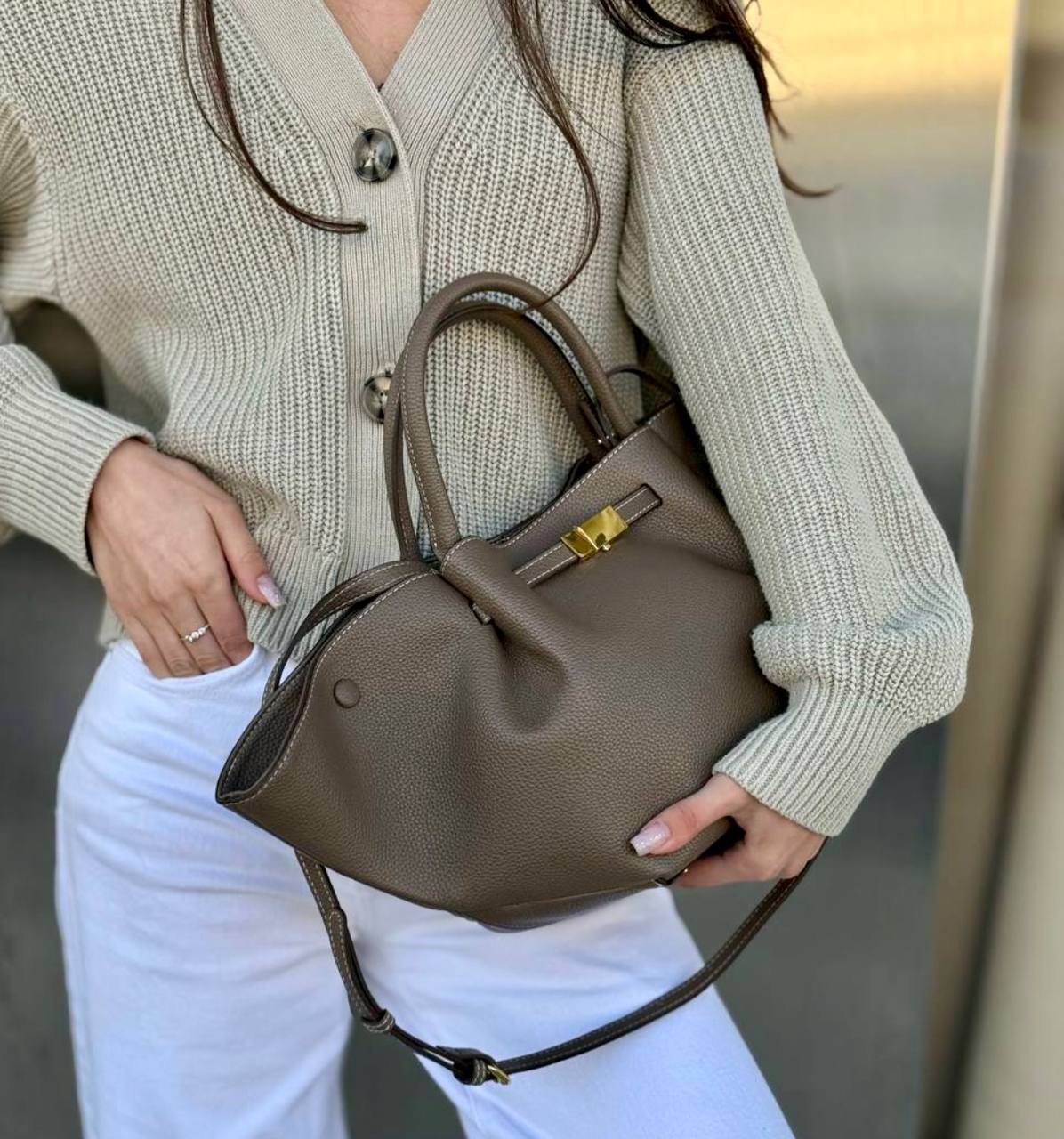 תיק עור אמיתי בטקסטורה גרגירית מגיע עם רצועת עור ארוכה אביזרים בגוון זהב