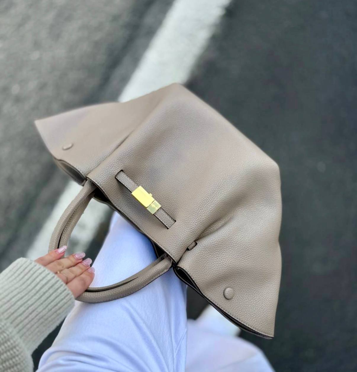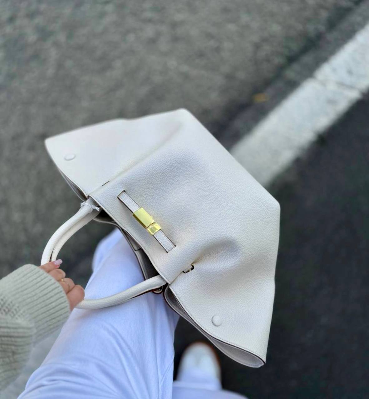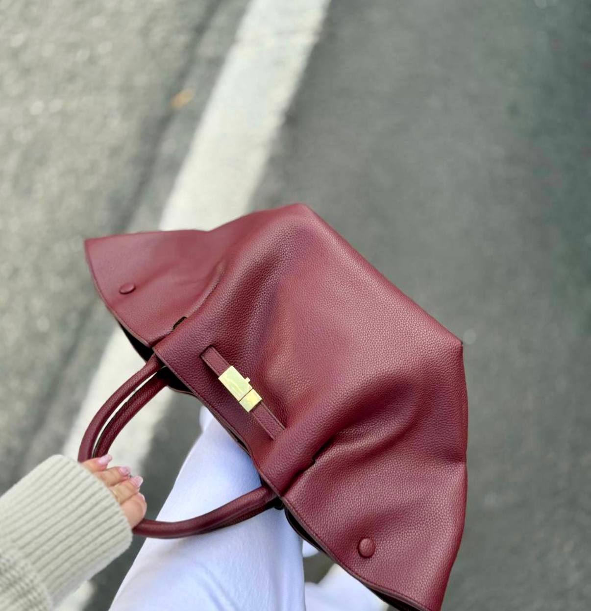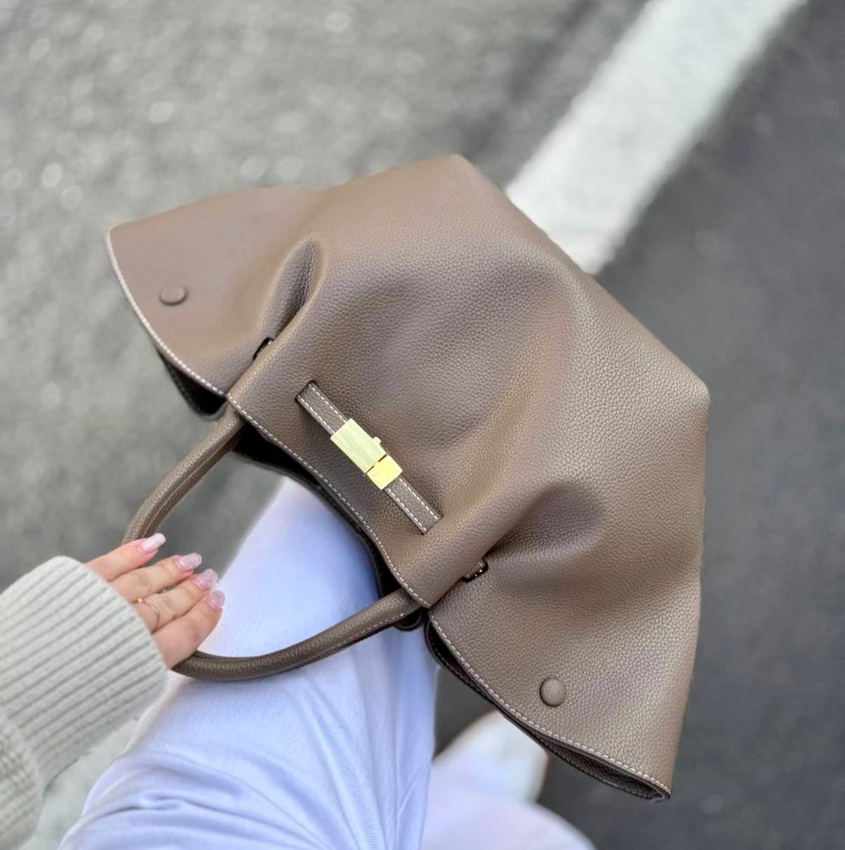 תיק עור אמיתי בטקסטורה גרגירית מגיע עם רצועת עור ארוכה אביזרים בגוון זהב